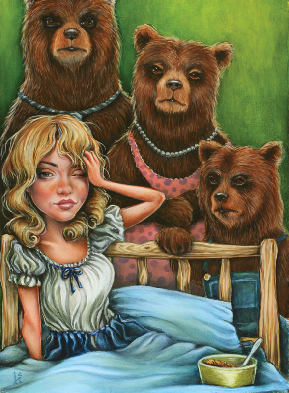 Goldilocks bolted awake. Three bears were looming over her, and they did not look happy.