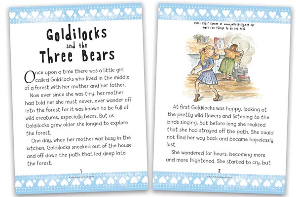 Goldilocks went inside. First she tasted the porridge of the great, huge bear, and that was far too hot for her. And then she tasted the porridge of the middle bear, and that was too cold for her. And then she went to the porridge of the little, small wee bear, and tasted that. And that was neither too hot nor too cold, but just right; and she liked it so well, that she ate it all up.